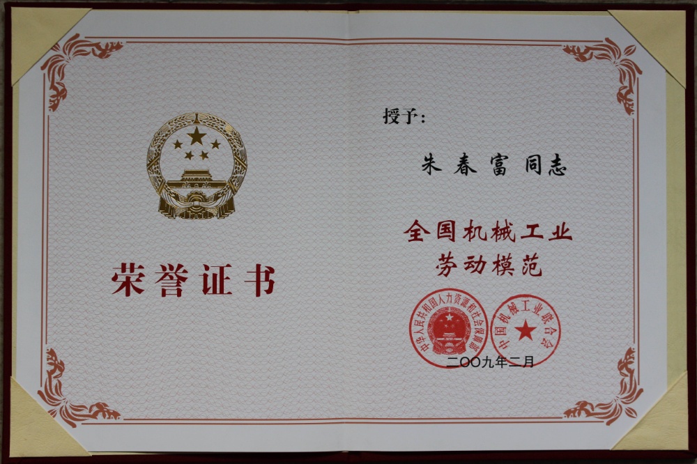 公司董事長朱春富榮獲“全國機械工業勞動模范”,公司開展實施的“國家進出口商品免驗企業”順利通過國家進出口商品檢驗檢疫總局專家組審查考核。