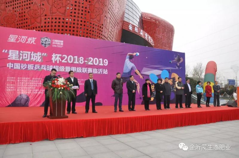 11月18日下午,“星河城杯"2018-19賽季中國(guó)砂板乒乓球超級(jí)聯(lián)賽·甲級(jí)聯(lián)賽·臨沂站在國(guó)際海棠藝術(shù)中心落下帷幕。本次大賽由臨沂市體育局、羅莊區(qū)人民政府、中國(guó)砂板乒乓聯(lián)盟主辦,奧德·國(guó)際海棠藝術(shù)中心承辦,金沂蒙集團(tuán)等企業(yè)贊助支持,金沂蒙生態(tài)肥業(yè)副總經(jīng)理劉仲濤出席聯(lián)賽開幕式。