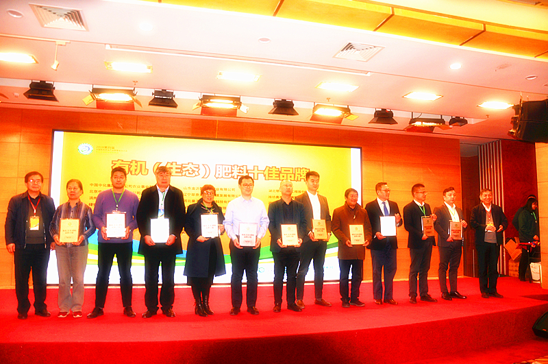 會上,中國農業資源與區劃協會和中國綠色有機聯合會對在生態農業方面做出突出貢獻的企業和個人進行了表彰。山東金沂蒙生態肥業有限公司的生物有機肥以其穩定的產品質量、明顯的使用效果和良好的市場聲譽,成功入圍“有機(生態)肥料品牌10強”,公司總經理馬曉麗代表公司上臺領獎。