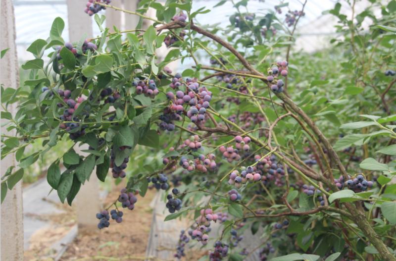 王雷的藍莓種植園一共是12畝,雖然已經經過了多輪采摘,但每棵樹上沉甸甸的藍莓依舊將枝條壓彎了腰。走近一看,一串串藍莓青若翡翠,紅似瑪瑙,藍如寶石,各色果實相間,晶瑩剔透,吹彈可破,讓人垂涎欲滴。隨手摘一顆放到嘴里,酸甜可口,滿嘴生津,讓人忍不住再摘一顆繼續品嘗。