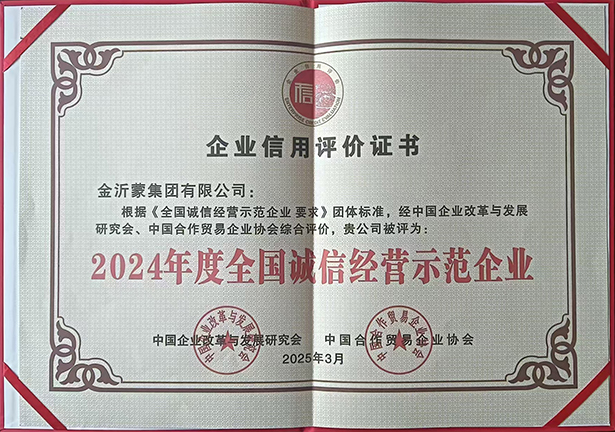 | 喜訊!金沂蒙集團榮獲“2024年度全國誠信經營示范企業”榮譽稱號 |