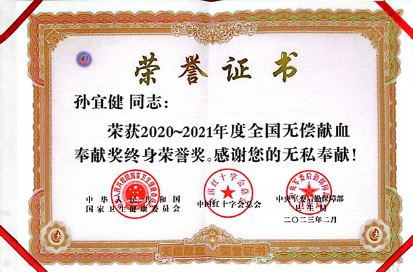 每一份獻血都是生命的接力,每一次參與都是對責任的踐行。據悉,無償獻血是金沂蒙集團長期堅持的公益活動之一,每年定期組織,為血液中心提供了大量寶貴血液資源,在企業內部營造了愛心奉獻的良好氛圍。集團有多名員工因積極獻血獲得表彰,例如來自集團物流公司的員工孫宜健,累計獻血時長達到23年,累計獻血量達到46400毫升,多次榮獲“全國無償獻血奉獻獎金獎”,2023年,更是榮獲“全國無償獻血奉獻獎終身榮譽獎”,成為了集團員工的榜樣和楷模。