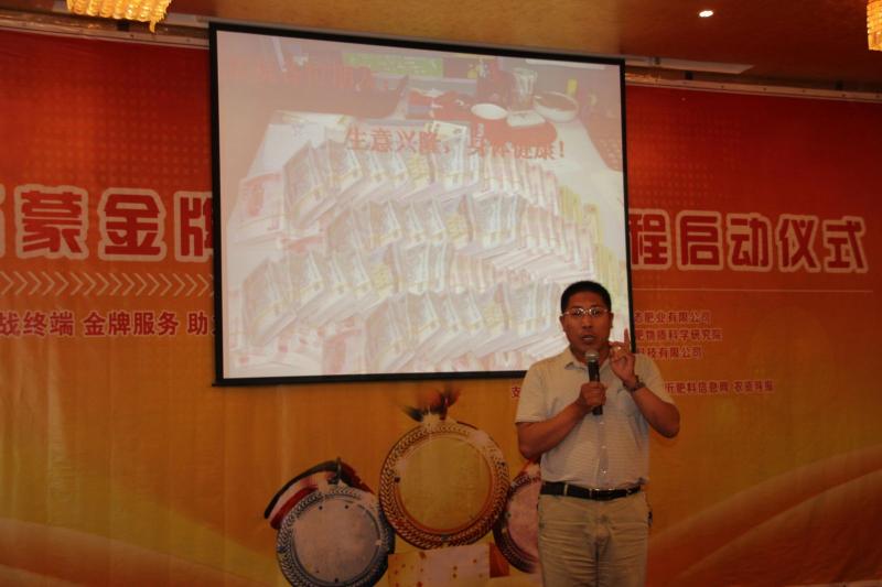來自淄博高青的總代理王總在啟動儀式上做了典型發(fā)言。王總是金沂蒙的忠誠客戶,從開始合作的每年一百來噸,到現(xiàn)在每年的數(shù)千噸,王總金沂蒙肥料的銷量是年年遞增。談到成功的訣竅,王總認為首先是“女要嫁對郎,男要入對行”,做肥料銷售一定要選擇金沂蒙這樣的大廠家,大品牌,大樹底下好乘涼;其次,一定要做好終端服務(wù),現(xiàn)在肥料銷售的競爭非常激烈,拼價格是兩敗俱傷,拼服務(wù)才會實現(xiàn)雙贏。王總毫無保留地將其在實際營銷中所做的終端服務(wù),特別是創(chuàng)新性的服務(wù)案例與大家進行了分享,希望與會經(jīng)銷商都緊密跟隨金沂蒙前進的步伐,調(diào)整策略,與時俱進,與金沂蒙一起進步,一起發(fā)展。
