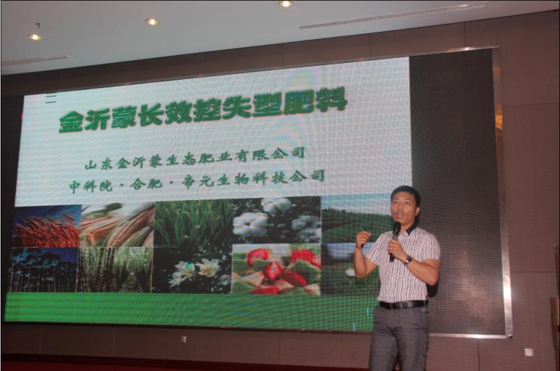 金沂蒙一直以來和國內多家科研院所、大中院校有著長期密切的合作關系,與中國科學院合肥物質科學研究院聯合研發的高端產品長效控失肥自推向市場以來深受老百姓的喜愛。會上,該院的專家張老師,從專業的角度,以嚴謹的語言,將金沂蒙長效控失肥的技術原理和“控失長效、保水保肥、豐產增收、節能環保、省工省錢”的五大特性進行了通俗易懂地講解,讓與會嘉賓對該產品有了進一步的認識。