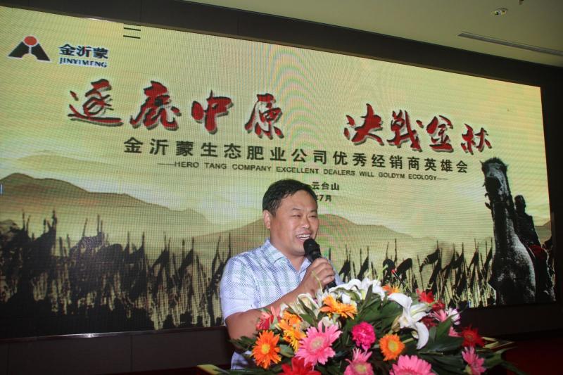 英雄會上,公司銷售總監楊秀東首先致辭。楊總全面分析了當前國內肥料行業面臨的整體形勢,以及經銷商朋友面臨的普遍處境,他指出,在當前形勢下,經銷商朋友只有調整格局,聚焦重點,集中優勢資源,專注優勢品牌,才能將肥料營銷做大做強。請經銷商朋友相信自己的選擇,相信品牌的力量,與金沂蒙建立戰略聯盟,形成同步發展、并肩前進的共同體。楊總還從“態度”、“方式”、“團隊”、“策略”四個方面具體闡述了經銷商朋友應該如何應對復雜的市場變化,希望經銷商朋友與時俱進,以變應變,迅捷行動,搶抓機遇,做優秀的行商,才能贏得成功和勝利!
