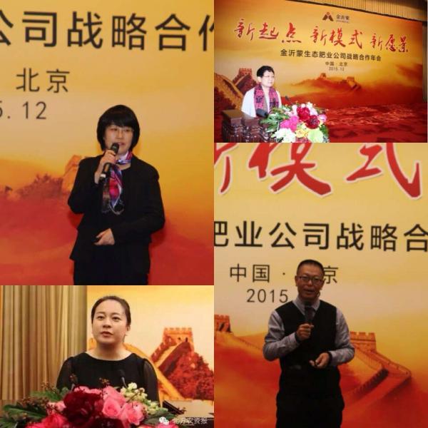 12月12日下午,金沂蒙在九華山莊的會議上隆表彰了2015年度的31位優秀經銷商,并與戰略合作伙伴簽訂了合作協議和高效聚元肥全年訂單。
