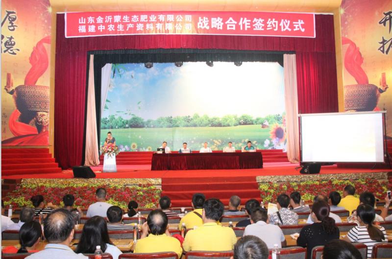 8月13日,山東金沂蒙生態(tài)肥業(yè)有限公司與福建中農(nóng)農(nóng)業(yè)生產(chǎn)資料有限公司戰(zhàn)略合作簽約儀式在金沂蒙集團禮堂舉行。金沂蒙生態(tài)肥業(yè)營銷總監(jiān)王紹山,東南大區(qū)經(jīng)理陳永,福建中農(nóng)農(nóng)業(yè)生產(chǎn)資料有限公司農(nóng)化部長賈部長賈進,福州站站長王明海,漳州站站長沈添義出席簽約儀式,福建中農(nóng)各地的優(yōu)秀經(jīng)銷商及金沂蒙生態(tài)肥業(yè)的營銷精英共同見證了這一榮耀時刻。