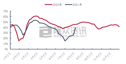 從往年生產情況來看,8月是生產備貨高峰,企業裝置開工率多會提升至中高運行負荷狀態,部分甚至至滿負荷狀態。但今年情況略顯特殊,企業以銷定產、按單生產仍是首選,因此企業開工生產狀況更多會結合預收訂單、原料儲備等因素。從目前情況來看,企業裝置開工率將繼續回升,尤其有資源優勢企業,后期開工率提升或更為明顯;但對于部分沒有資源優勢、持續停車的裝置,是否重啟仍是未知數。