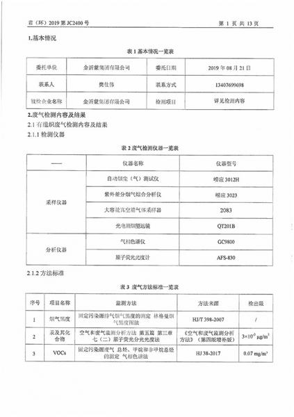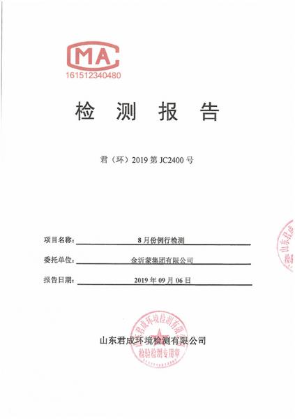 金沂蒙集團(tuán)8月第1次檢測報(bào)告